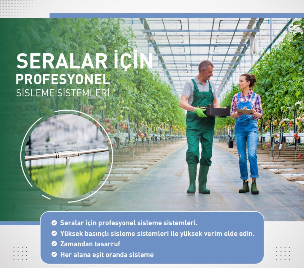 Seralar için sisleme ve serinletme sistemleri, bitkilerin doğal ortam koşullarına en yakın iklimde yetişmesini sağlar. Enerji tasarrufu, yüksek verim ve uzun ömürlü kullanım avantajlarıyla modern tarımın vazgeçilmez bir parçasıdır.